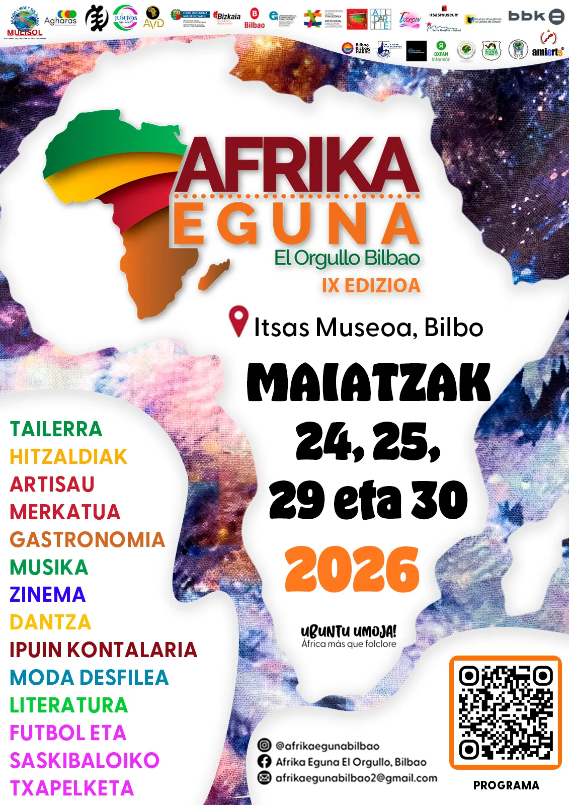 Afrika Eguna 2025 ofrecerá cuatro días de celebración en Bilbao con actividades que combinan deporte, cultura, arte, música y reflexión. El evento reunirá a colectivos y comunidades para disfrutar de torneos, conferencias, exposiciones, desfiles, conciertos y espacios de encuentro que visibilizan la diversidad y la riqueza del continente africano.
